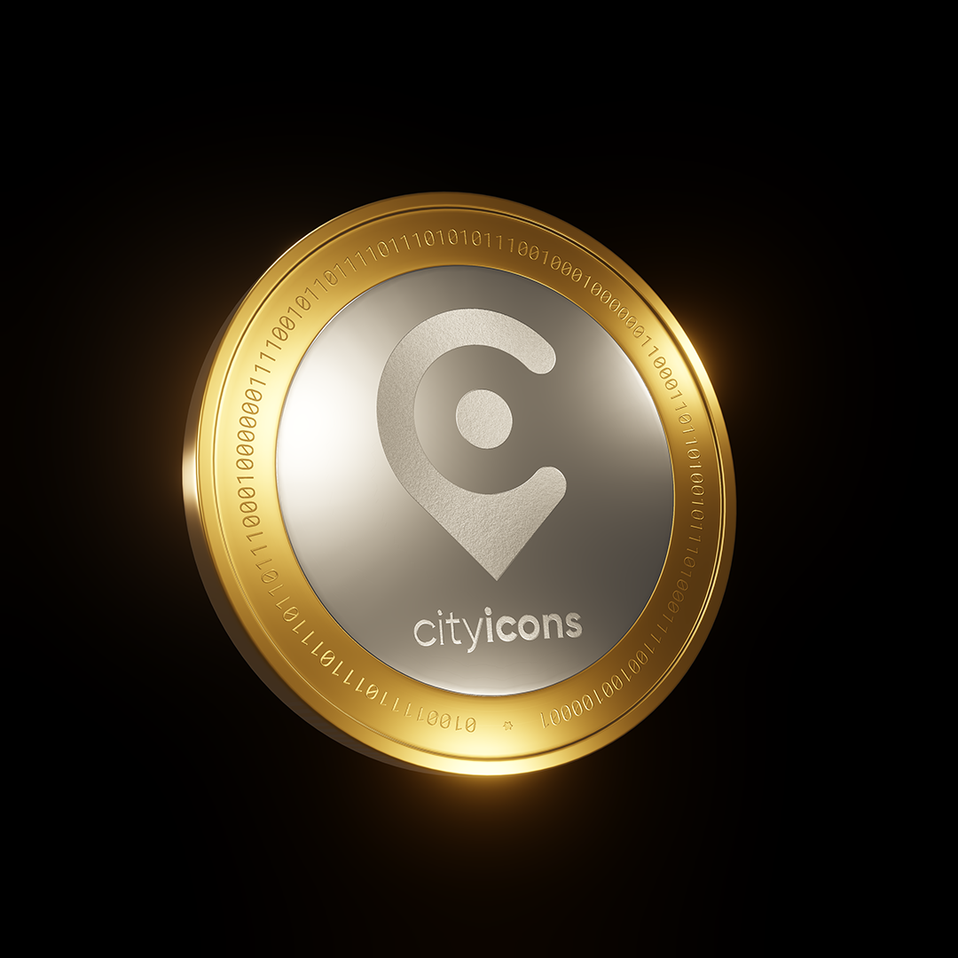 cityicons are 3D animated coins in gleaming gold and silver, displaying an engraved picture of a popular city's landmark, the city's and the landmark's name and the exact coordinates in longitude and latitude. On the back there is the cityicon logo as well as a hidden message in binary code.